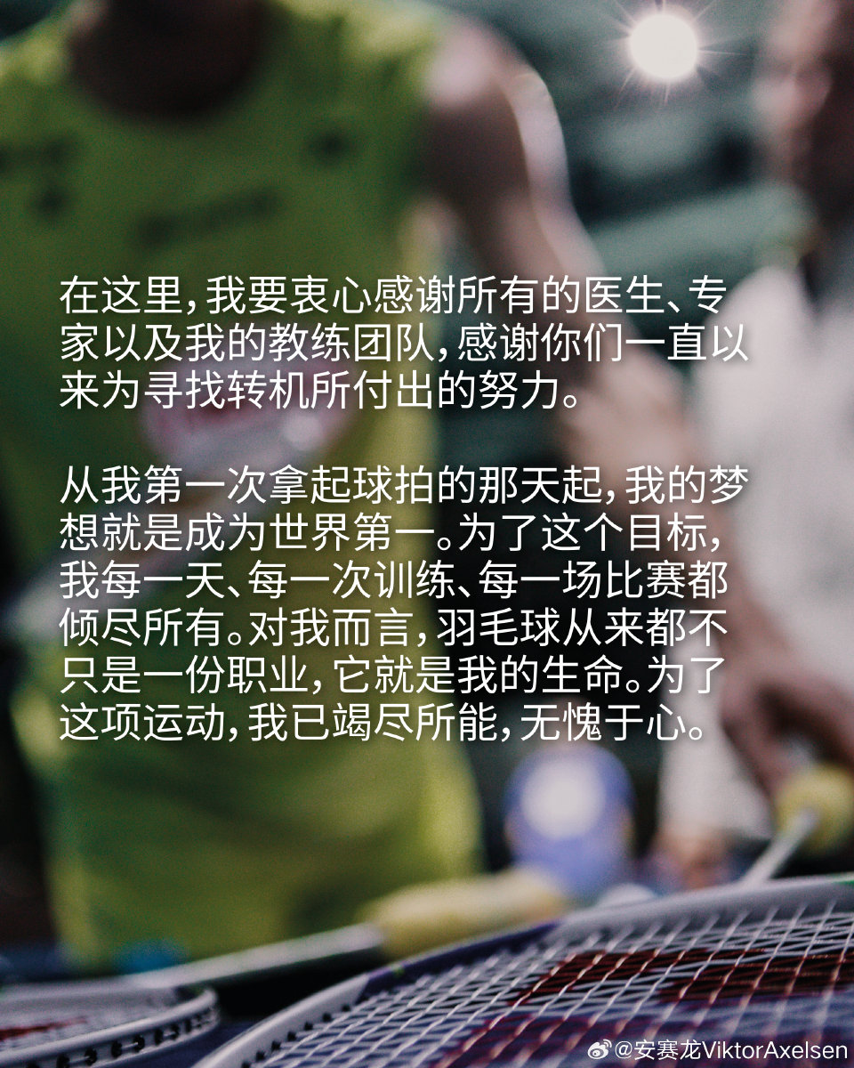 天弘配资官网 丹麦羽毛球运动员安赛龙发文宣布退役